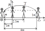你知道吗?平时我们在跳大绳时,绳甩到最高处的形状可近似地看为抛物线.如图所示,正在甩绳的甲、乙两名学生拿绳的手间距为,距地面均为,学生丙、丁分别站在距甲拿绳的手水平距离、处.绳子在甩到最高处时刚好通过他们的头顶.已知学生丙的身高是,则学生丁的身高为(建立的平面直角坐标系如图所示)( )
