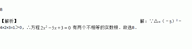 B 【解析】【解析】 ∵△=(﹣5)2﹣4×2×3=1>0,∴方程有两个不相等的实数根.故选B.