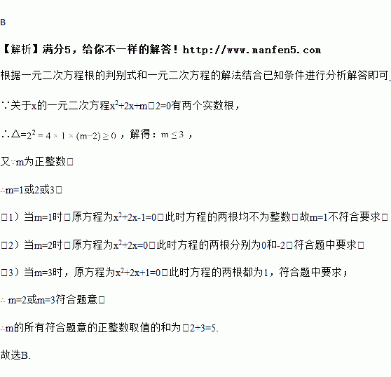 已知关于x的一元二次方程x2+2x+m﹣2=0有两个实数根,m为正整数,且该方程的根都是整数,则符合条件的所有正整数m的和为( )