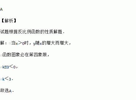 的图象,当x>0时,y随x的增大而增大,则k的取值范围是( ).