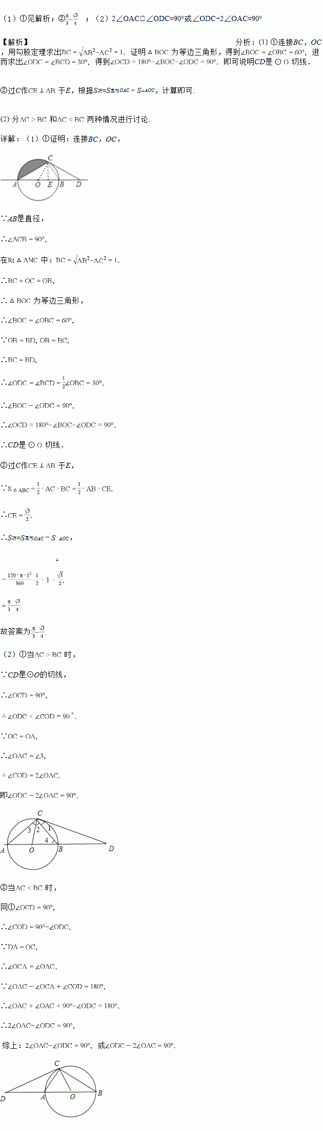 如图,⊙O半径为1,AB是⊙O的直径,C是⊙O上一点,连接AC,⊙O外的一点D 在直线AB上.
