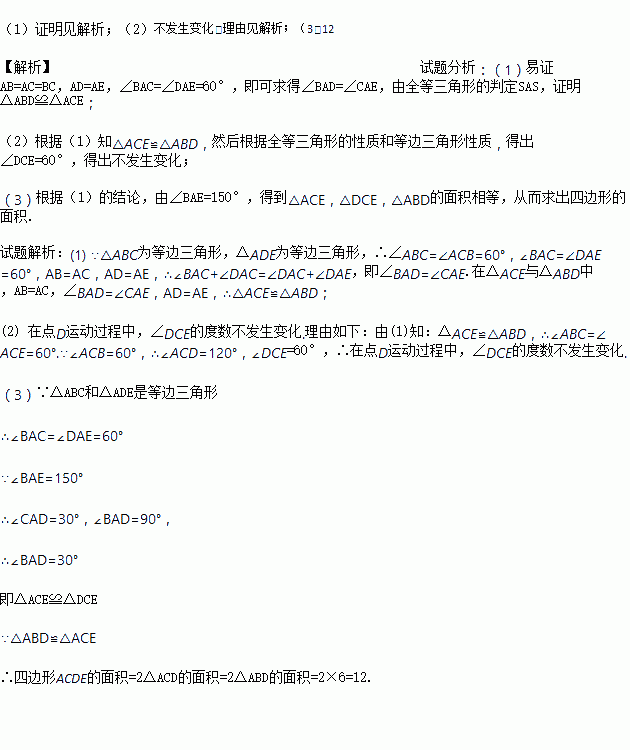 (3) 若∠BAE=150°,△ABD的面积为6,求四边形ACDE的面积.
