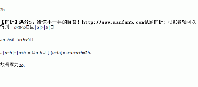 在数轴上表示a、b两个实数的点的位置如下图所示,则化简:|a?b|?|a+b|的结果为_________.