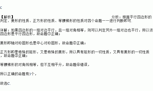 ①如果四边形的一组对边平行一组对角相等,那么这个四边形是平行四边形;