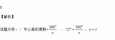 如果一个正多边形的中心角为72°,那么这个正多边形的边数是 .