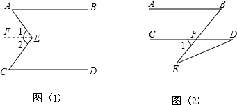 分析:(1)过点E作EF∥AB,可得EF∥CD,根据两直线平行,内错角相等可得∠A=∠1,∠2=∠C,然后即可得证;