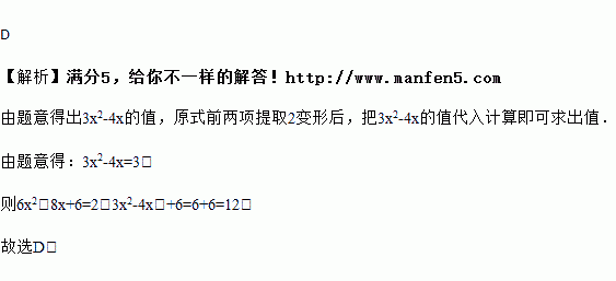 已知代数式3x2﹣4x+6的值为9,则6x2﹣8x+6的值为( )