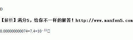 A. 0.74×10﹣10米 B. 74×10﹣12米 C. 7.4×10﹣10米 D. 7.4×10﹣11米
