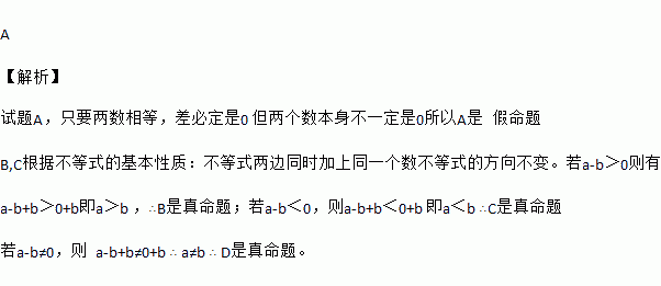 A. 若a-b=0,则a=b=0 B. 若a-b>0,则a>b