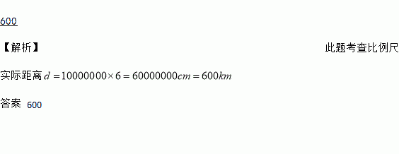 在比例尺1∶10 000 000的地图上,量得甲、乙两个城市之间的距离是6 cm,那么甲、乙两个城市之间的实际距离应为 km.