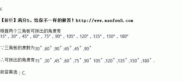 用两把常用三角板不可能拼成的角度为( )