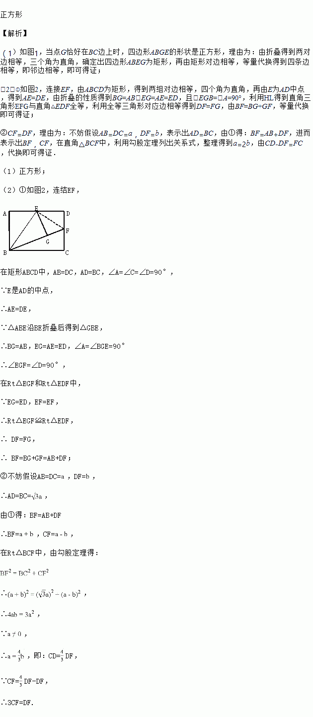 (1)填空:如图1,当点G恰好在BC边上时,四边形ABGE的形状是___________形;