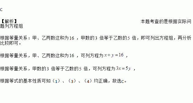 甲、乙两数这和为,甲数的倍等于乙数的倍,若设甲数为,乙数为,则方程组(1) (2)(3) (4)中,正确的有( )
