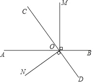 如图,直线AB、CD相交于点O,∠BOM=90°,∠DON=90°.