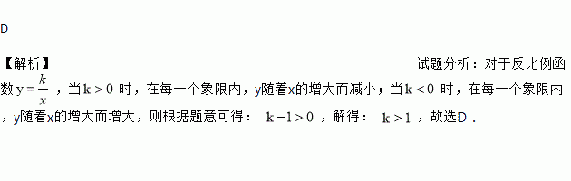 在反比例函数图象的每一支曲线上,y都随x的增大而减小,则k的取值范围是( )
