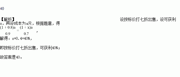 某商场将一款品牌时装按标价打九折出售,可获利80%,若按标价打七折出售,可获利______%。