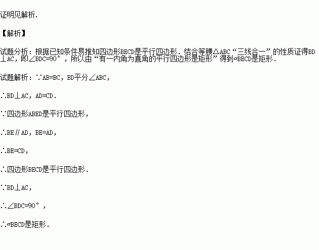 如图,在△ABC中,AB=BC,BD平分∠ABC.四边形ABED是平行四边形,DE交BC于点F,连接CE.