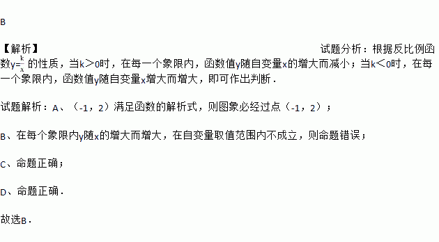 A. 图象必经过点(-1,2) B. y随x的增大而增大