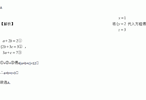 的解,则a+b+c的值是( )