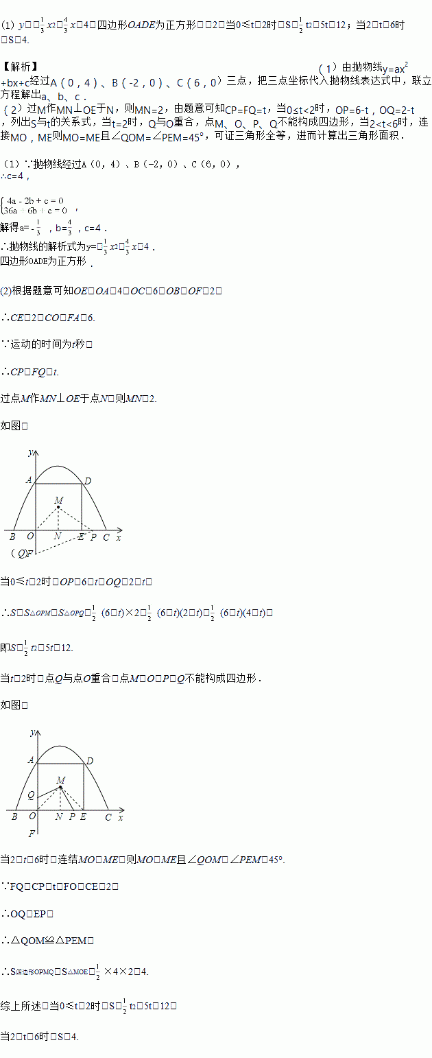(1)求抛物线所对应的函数表达式,并直接写出四边形OADE的形状;