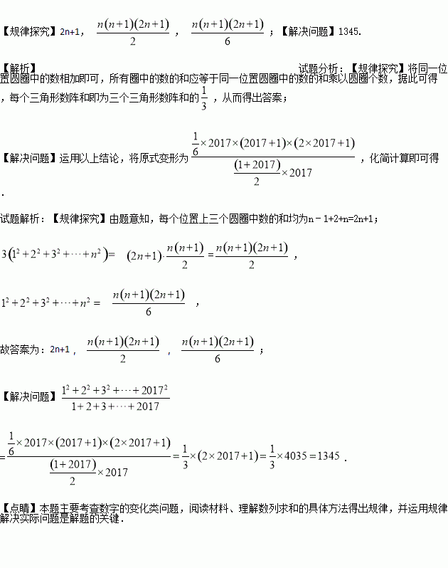 个圆圈,所有圆圈中数的和为12+22+32+…+n2.