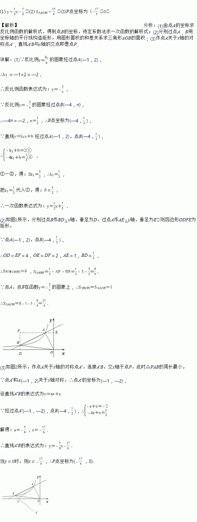 (x<0)的图象相交于点A(-1,2)、点B(-4,n).