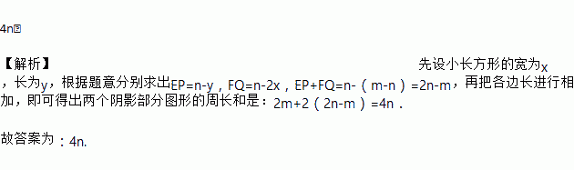 把四张形状大小完全相同的小长方形卡片(如图1)不重复地放在一个底面为长方形(长为m cm,宽为n cm)的盒子底部(如图2),盒子底面未被卡片覆盖的部分用阴影表示.则图2中两块阴影部分周长和是_____cm.(用m或n的式子表示).