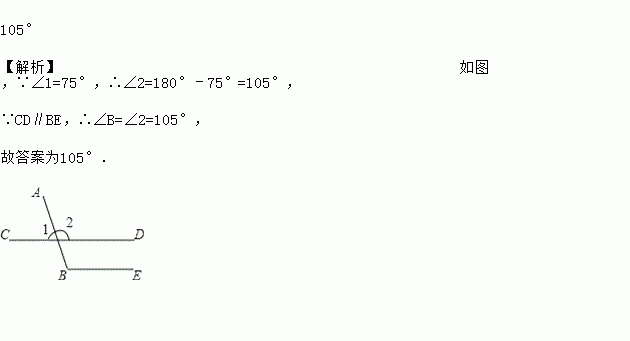 如图,已知∠1=75°,如果CD∥BE,那么∠B=_______.