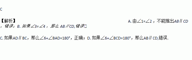 B. 如果∠3=∠4 ,那么 AD∥BC