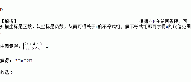 已知点P(2a+4,3a-6)在第四象限,那么a的取值范围是( )