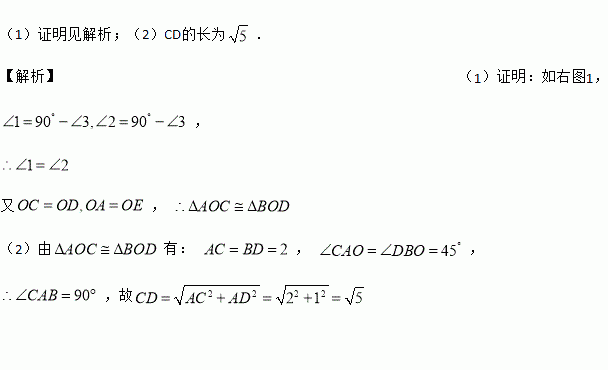 如图所示、△AOB和△COD均为等腰直角三角形,∠AOB=∠COD=90°,D在AB上.