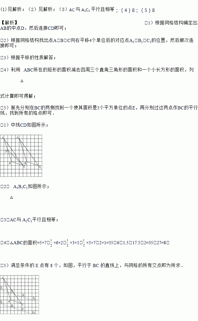 (5)能使△BCE 面积为 3 的格点 E 有 个.