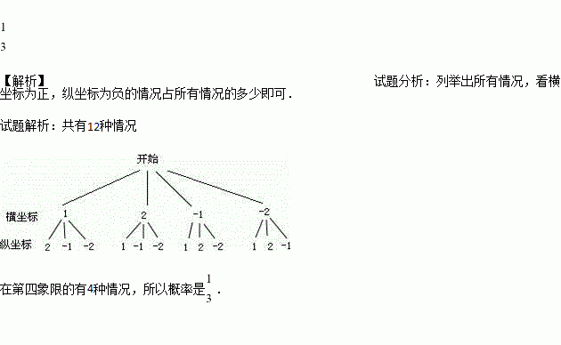 完全相同的四张卡片,上面分别标有数字1,2,﹣1,﹣2,将其背面朝上,从中任意抽出两张(不放回),把第一张的数字记为a,第二张的数字记为b,以a、b分别作为一个点的横坐标与纵坐标;求点(a,b)在第四象限的概率.(用树状图或列表法求解)