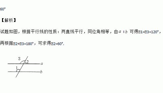 如图,已知直线∥,∠1=120°,则∠的度数是 °.