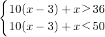 分析:设个位数字为x,则十位数字是x-3,根据关键语句“一个大于36而小于50的两位数,”可得不等式