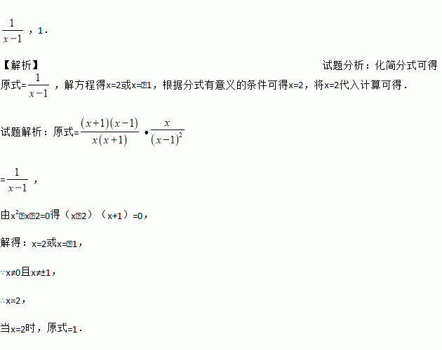 先化简,再求值: ÷,其中x满足方程x2﹣x﹣2=0.