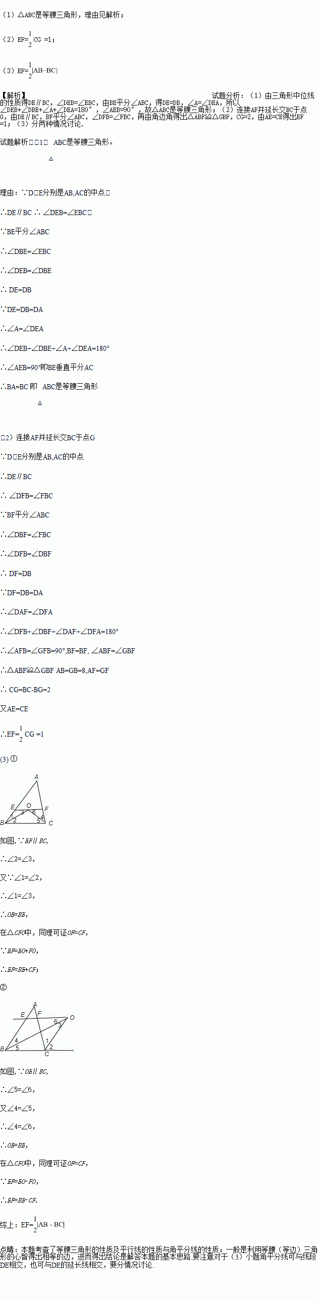 (1)如图1,若∠B的平分线恰好经过点E,猜想△ABC是怎样的特殊三角形,并说明理由;