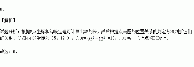 若⊙P的半径为13,圆心P的坐标为(5,12),则平面直角坐标系的原点O与⊙P的位置关系是( ).