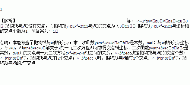 抛物线y=﹣3x2+2x﹣1与坐标轴的交点个数为________.