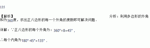 正八边形的每一个内角的度数为______度