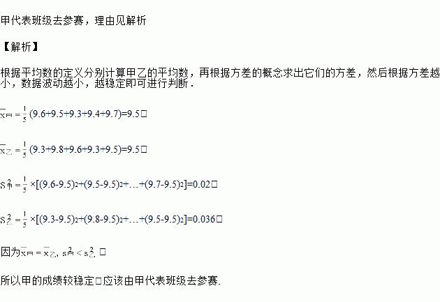 某班通过一次射击测试,在甲、乙两名同学中选出一名同学代表班级参加校射击比赛,这两位同学在相同条件下各射靶5次,所测得的成绩分别如下:(单位:环)
