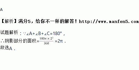 如图,⊙A,⊙B,⊙C的半径都是2cm,则图中三个扇形(即阴影部分)面积之和是( )