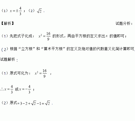 (1)解方程:9x2-16=0;