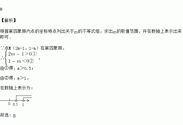 已知点在第四象限,则m的取值范围在数轴上表示正确的是