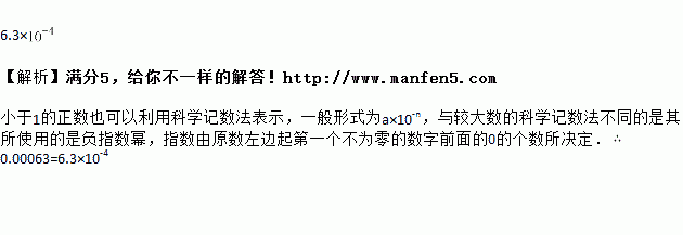 某种生物孢子的直径为0.00063m,用科学记数法表示为 m.