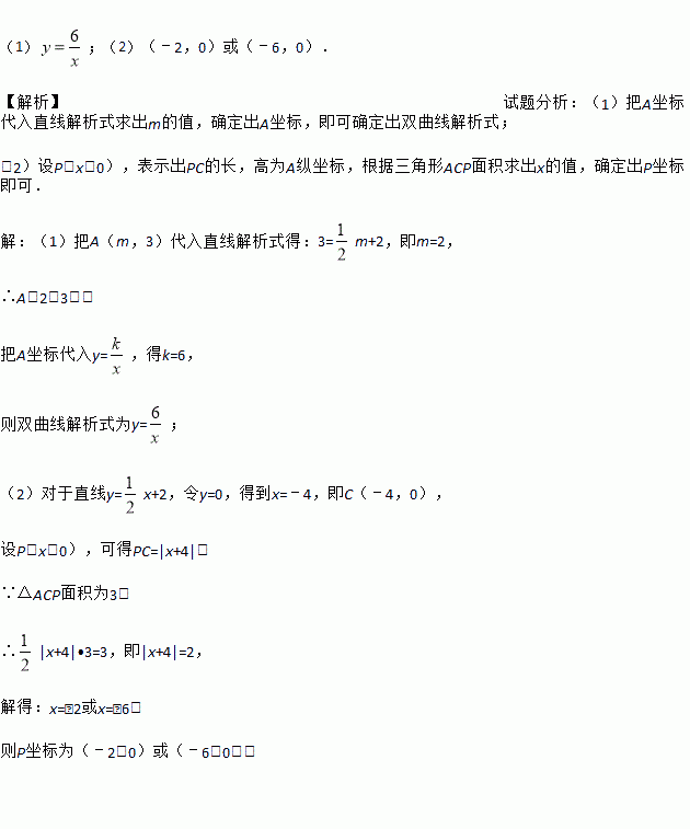 如图,直线与双曲线相交于点A(m,3),与x轴交于点C.