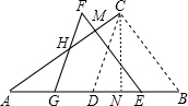 (2)过C作CN⊥AB于N,证明△BCD为等边三角形,利用勾股定理计算出CN,根据直角三角形的性质计算出MF,HM,再表示出△FHM和△FGE的面积,求差即可.