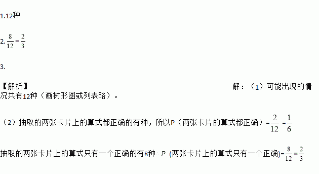 2.分别求抽取的两张卡片上的算式都正确的概率和只有一个算式正确的概率.
