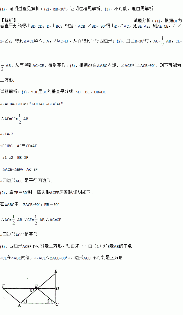 (3)四边形ACEF有可能是正方形吗?为什么?