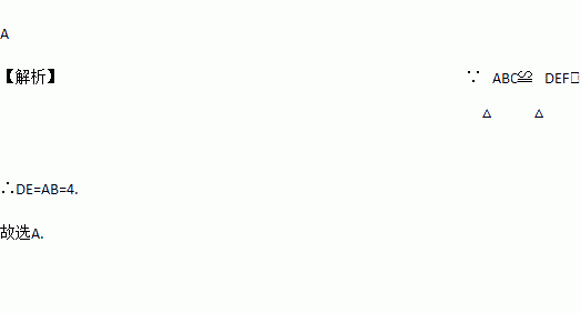 已知△ABC≌△DEF,且AB=4,BC=5,AC=6,则DE的长为( )